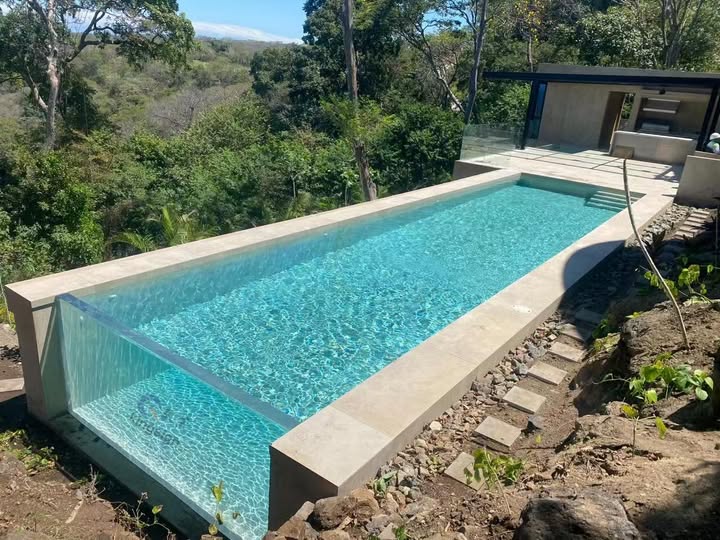 Các tính chất vật lý của acrylic xác định rằng đó là lựa chọn duy nhất cho các vật liệu bể bơi trong suốt. Nó có những lợi thế sau :