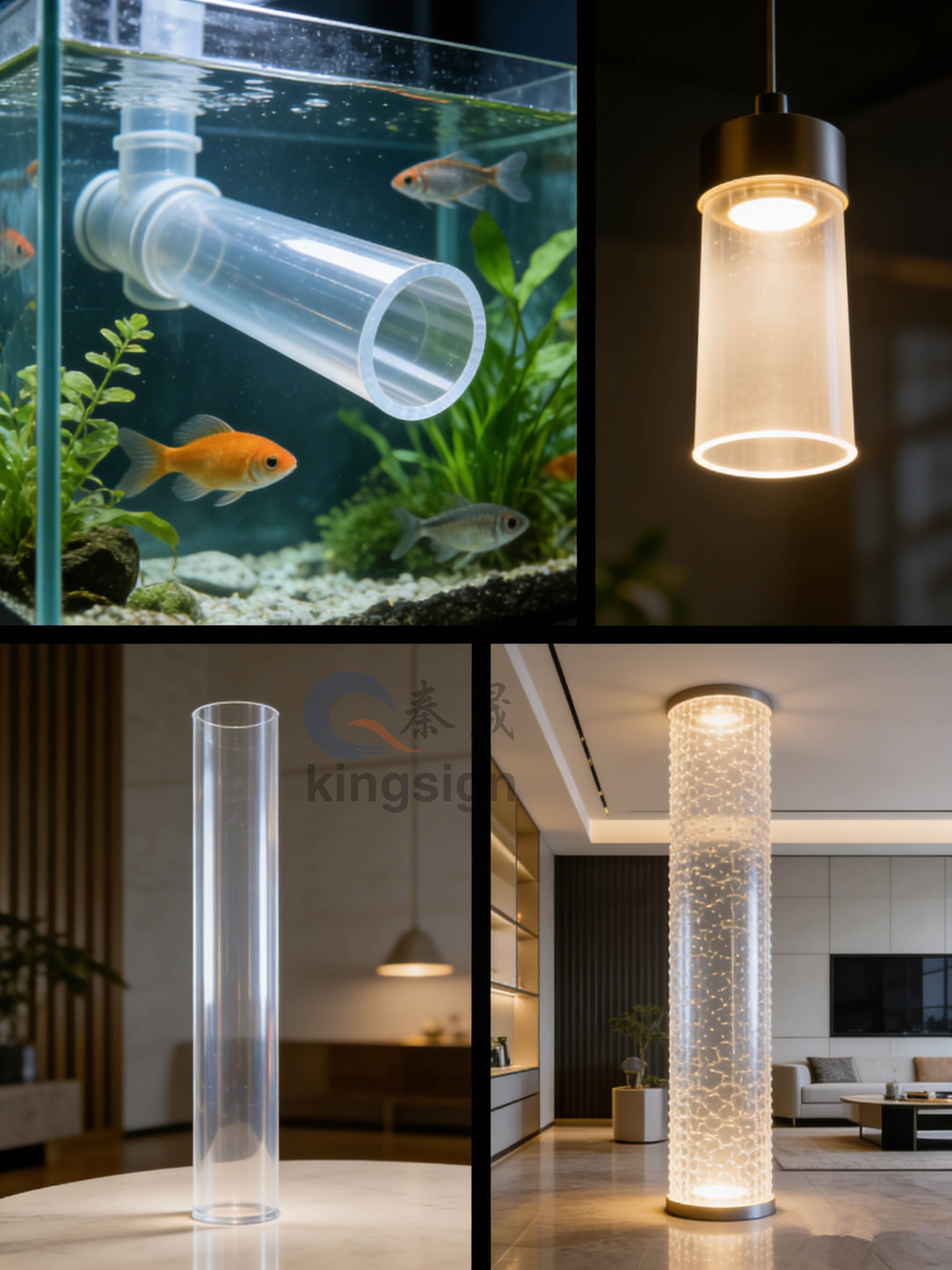 Kingsigntập trung vào độ rõ nét cao, độ dày thành đồng đềuxi lanh acrylicmang lại khả năng truyền ánh sáng đặc biệt, khả năng chống va đập mạnh và khả năng chịu thời tiết tuyệt vời. Được sử dụng rộng rãi trong hệ thống chiếu sáng, trang trí kiến trúc, thiết bị y tế, xử lý nước, hệ thống bể cá và thiết bị công nghiệp, ống acrylic của chúng tôi hỗ trợ kích thước, màu sắc và dịch vụ xử lý tiêu chuẩn và tùy chỉnh bao gồm cắt, khoan, gấp mép và liên kết.
